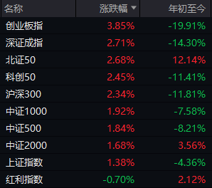 12月28日,大盘全天低开高走,创业板指领涨。截至收盘,沪指涨1.38%,深成指涨2.71%,创业板指涨3.85%。