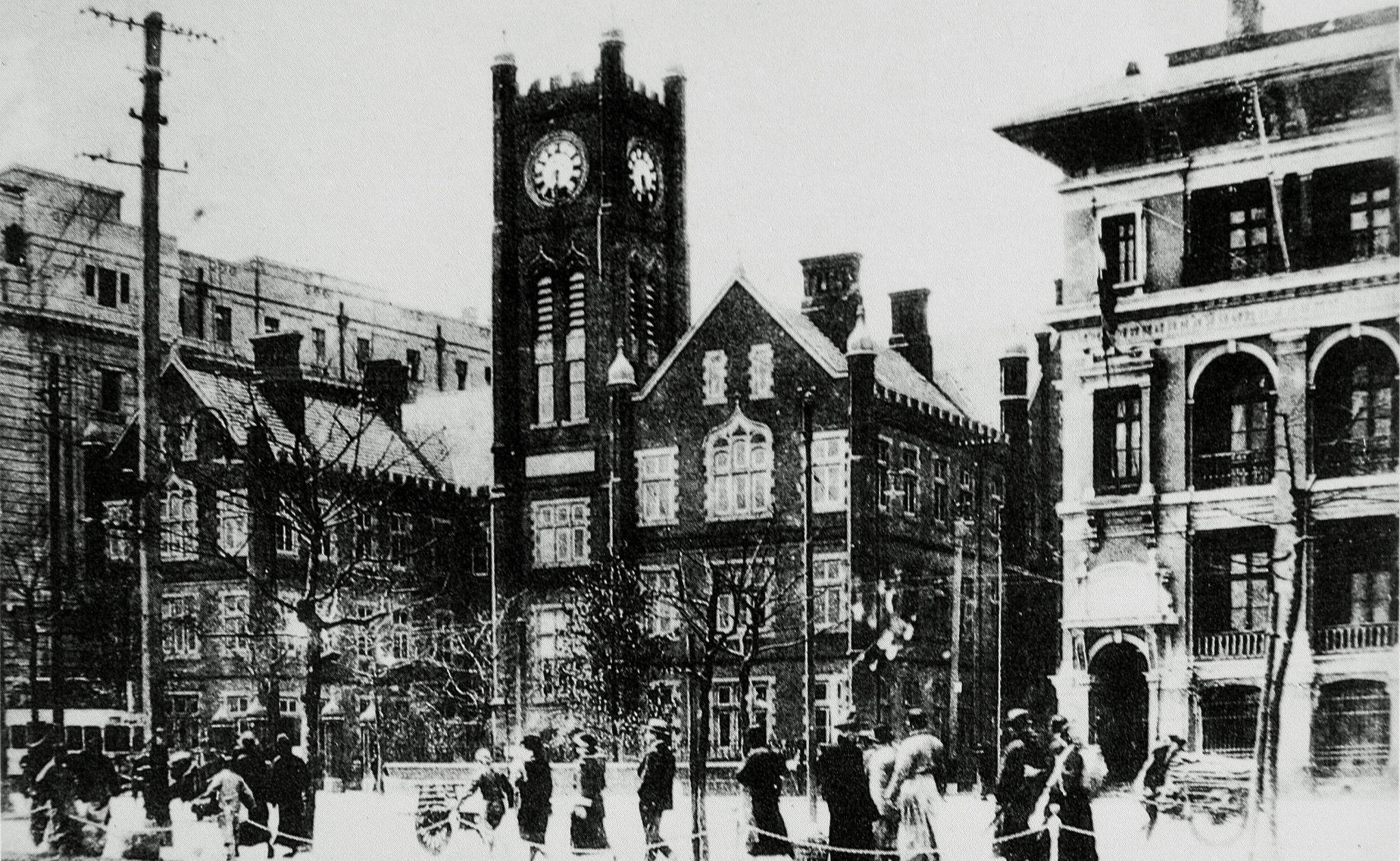 上海开埠之后,根据《南京条约》中的内容开设了海关。1857年,清政府在今汉口路外滩建设了新的衙门式江海北关办公楼。
