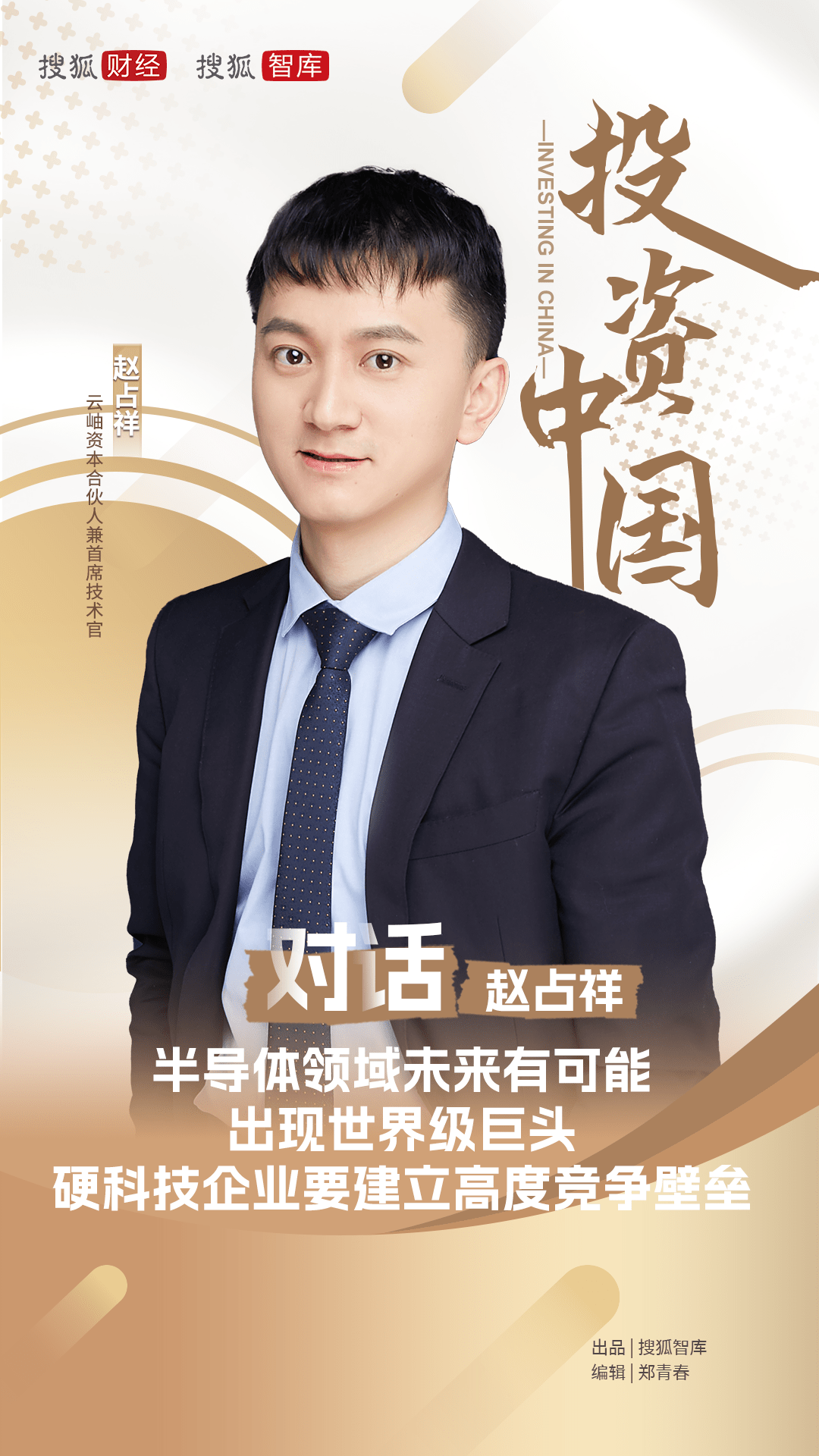 赵占祥:我以前是芯片工程师。最早的时候,我在北京微软研究院做人工智能研究,研究的方向是AI芯片。大概在2017年,我想转入投资行业,因为中国整个半导体行业在之前很少有投资人会关注;到2018年左右,这个行业的投资风口来了,我那时作为行业专家,很多人经常问我半导体投资该怎么看。