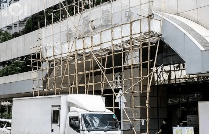 ▲今年6月,香港恒大中心招牌更新为“万通保险中心”,当时名牌上还覆盖有胶膜和脚手架。图片来自香港01。