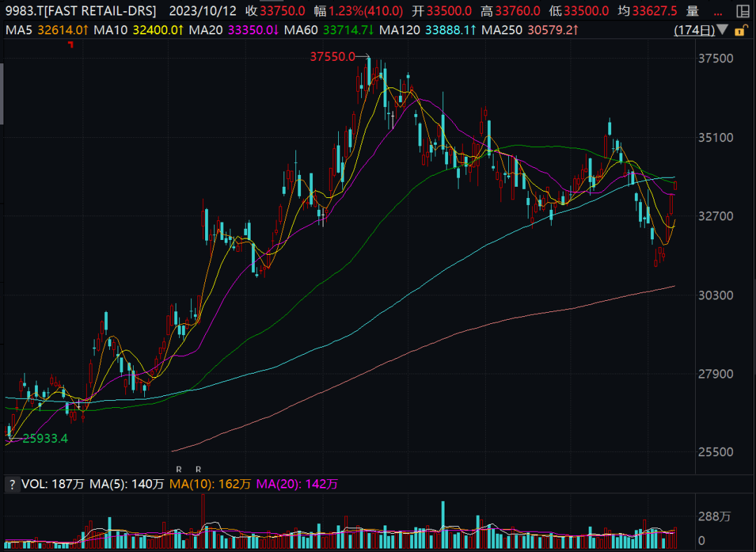 业绩持续向好也刺激了迅销的股价。年初至今,在东京证券交易所上市的迅销股价上涨了25.73%,在香港上市的存托凭证上涨了14.09%。