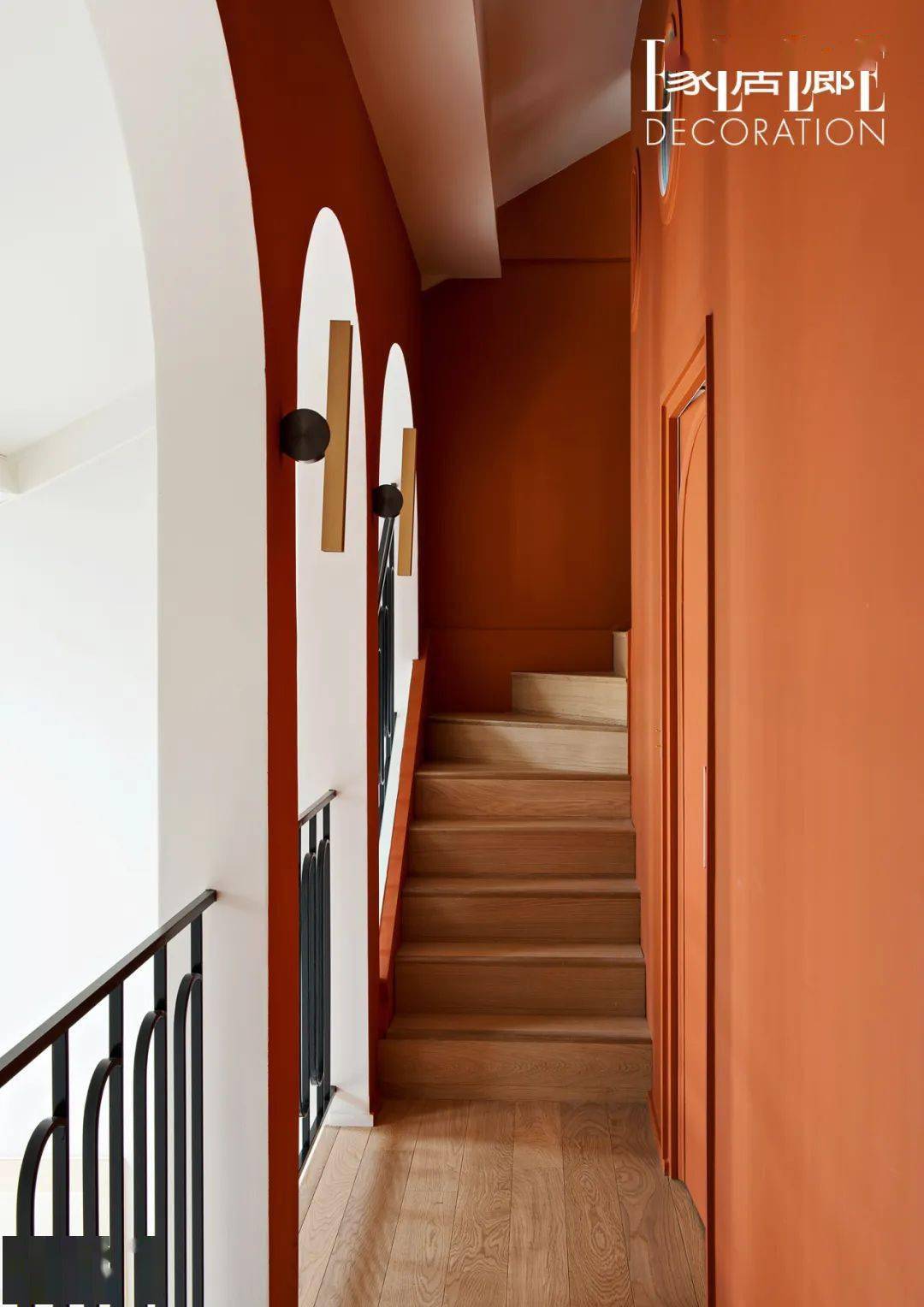走廊铺着橡木地板(La Parqueterie Nouvelle),Calé(e) 壁灯(CVL Luminaires)由Pool Studio设计。