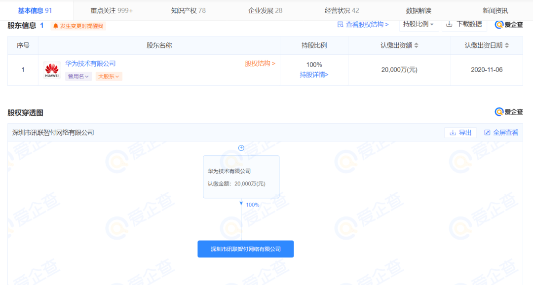 2021 年,华为大举收购了讯联智付的支付牌照,业务类型为互联网支付、移动电话支付。