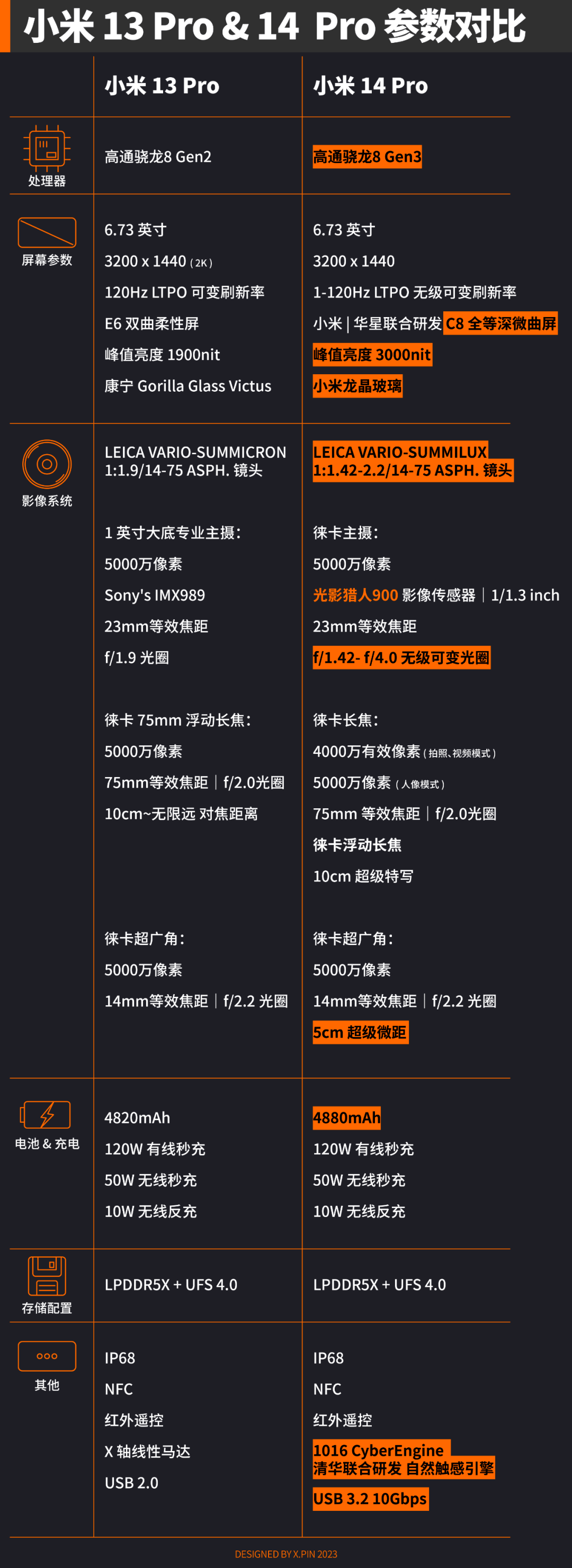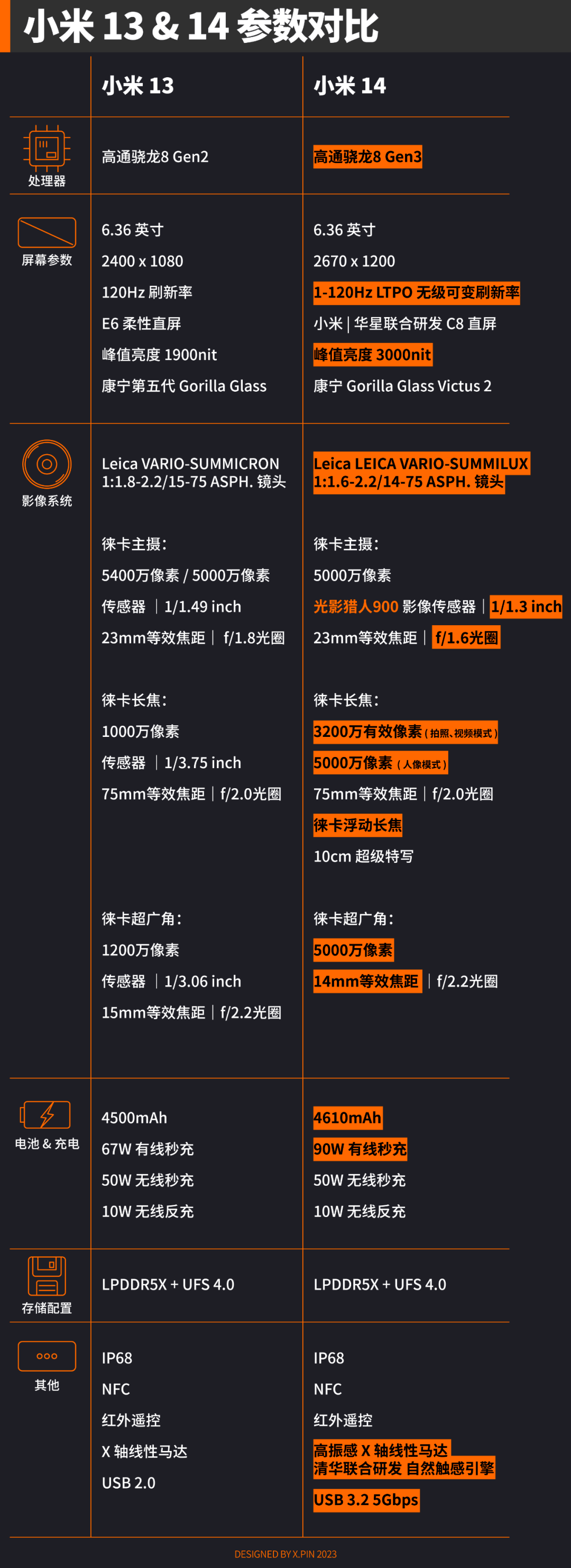 咳咳,我知道大家很急啊,所以就先把小米 13 系列和 14 系列的参数对比图先端上来了。