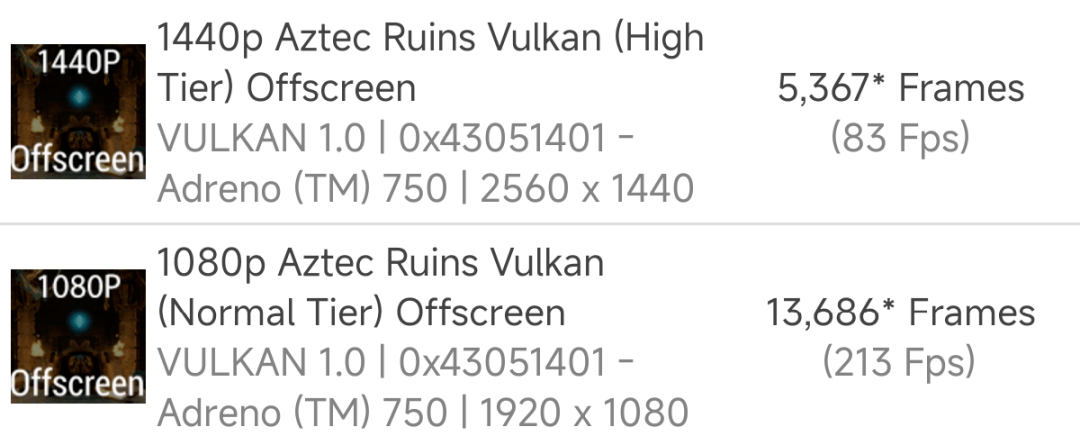 托尼又测试了一下 GPU 跑分软件 GFX Bench , 8 Gen 3 的 GPU 峰值性能,2K 测试跑到了83 帧,而 1080P 则飙到了213 帧。