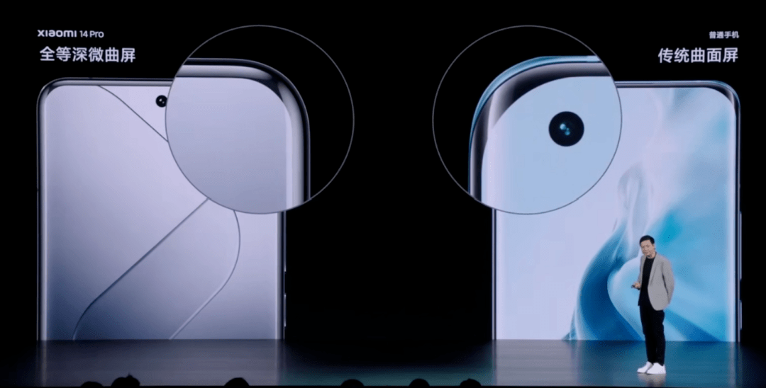 14 Pro 正面的屏幕与背板玻璃的弧度做到了一致,正面的屏幕不需要玻璃支架,实现了观感上的窄边框观感,而且把曲面屏猫耳的问题也给解决了。