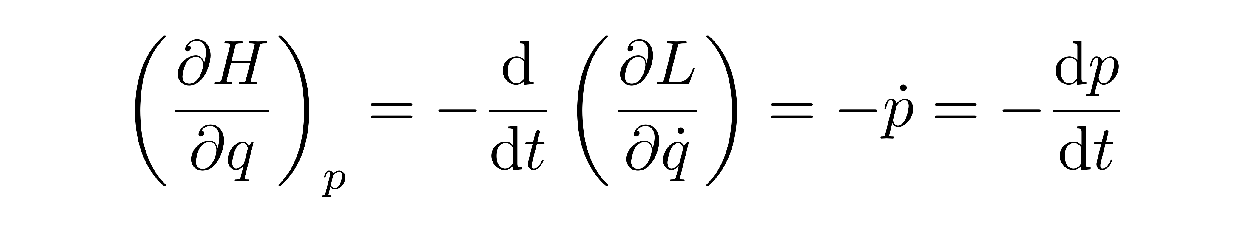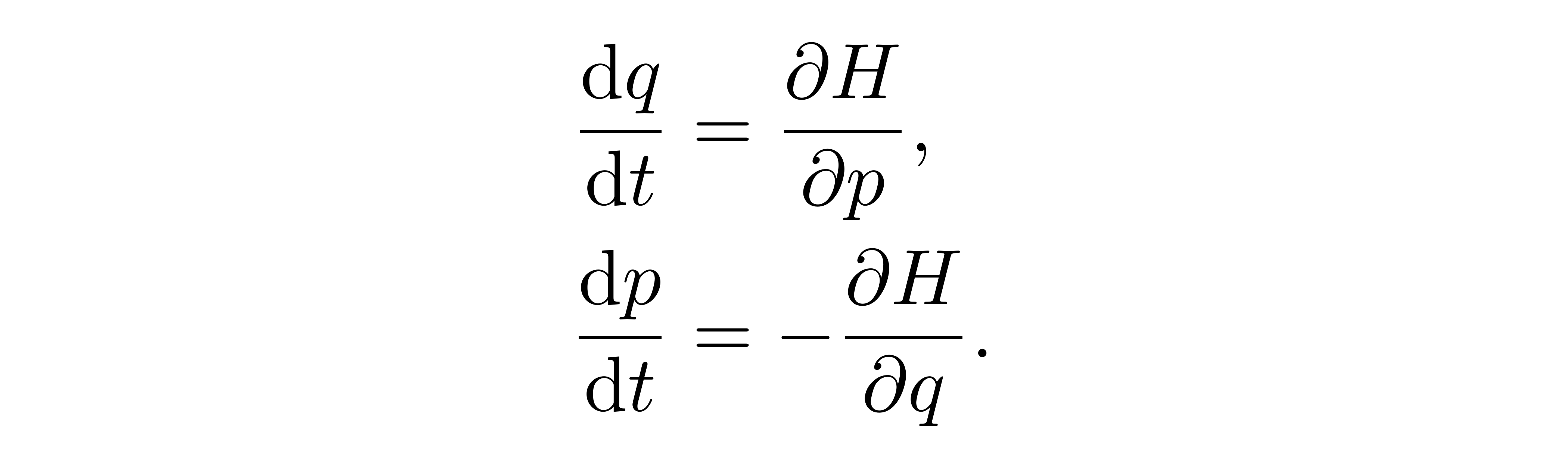 第二条等式中,等号左边是动量对时间的偏导,等号右边事实上定义了所谓的“广义力”。更值得一说的是,他们之间有相当对称的形式:某一变量随时间的演化,应由哈密顿量对另一变量的偏导决定,可以再一次印证前述提到变量 p 和 q 之间的对称性。