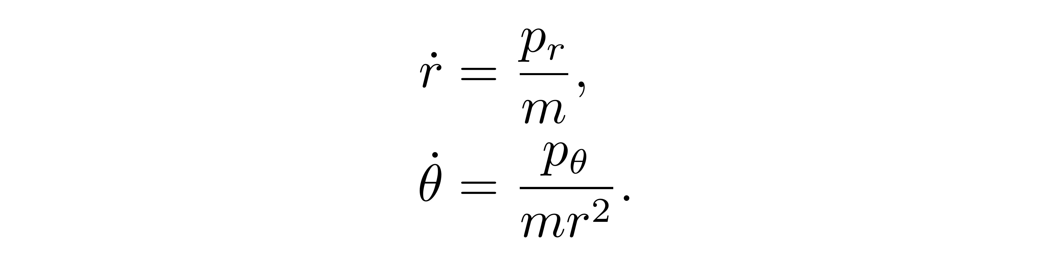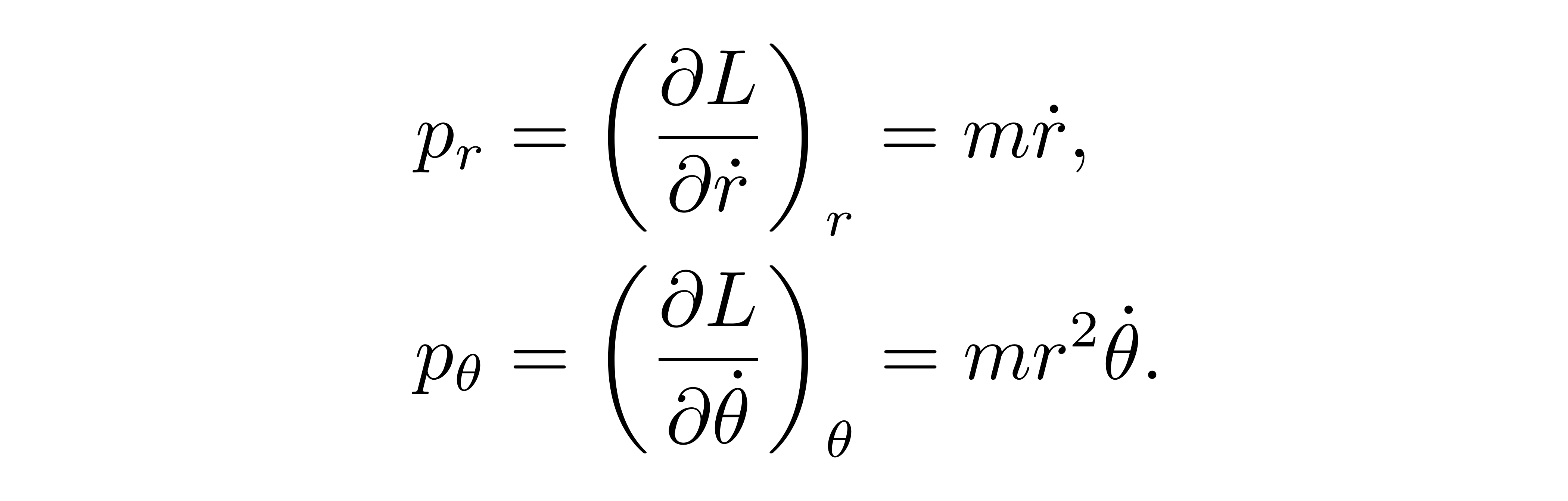 不难看出它即是向外的向心力,与用牛顿定理推出来的径向方程一致。再求角坐标 θ 相关的哈密顿方程(组),对广义动量求导