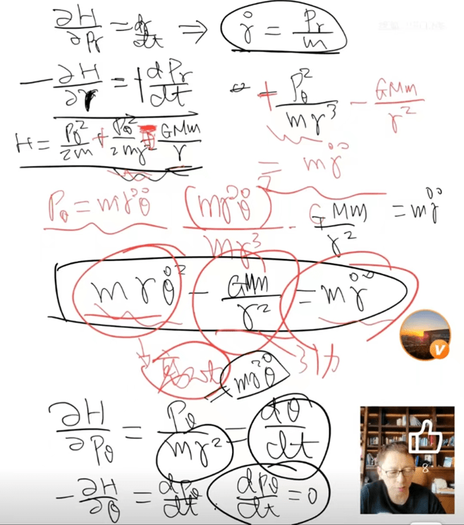 为了更好地理解哈密顿力学如何求解具体力学问题,不妨将其运用于考察中心力场,比如引力场中质点的运动。在前面的课程中,张朝阳曾演示过用拉格朗日力学来处理过这一问题。