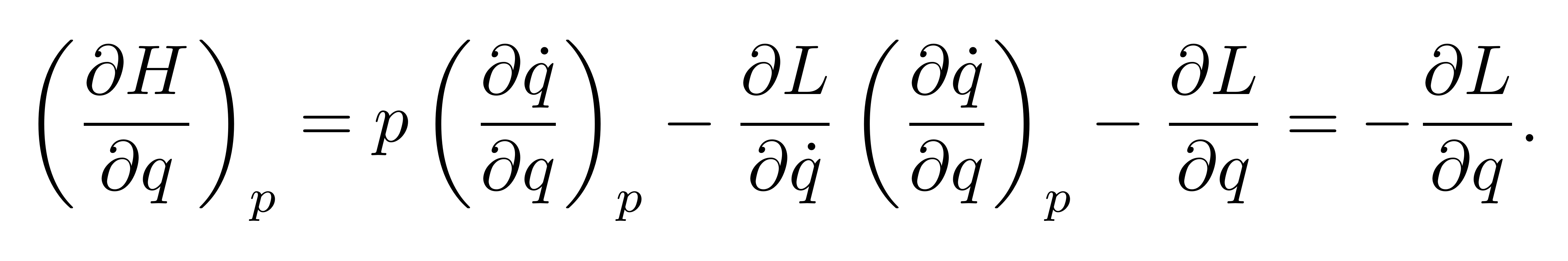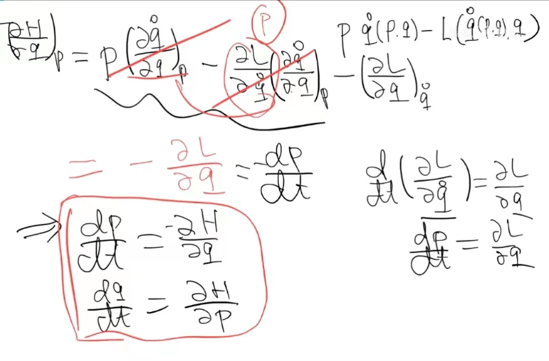 值得注意的是,此时等号坐标是 p 和 q 的函数,等号右边应当也保持一致。在实际推导时,应该将广义坐标的时间倒数连同拉格朗日量用新变量重新表达为