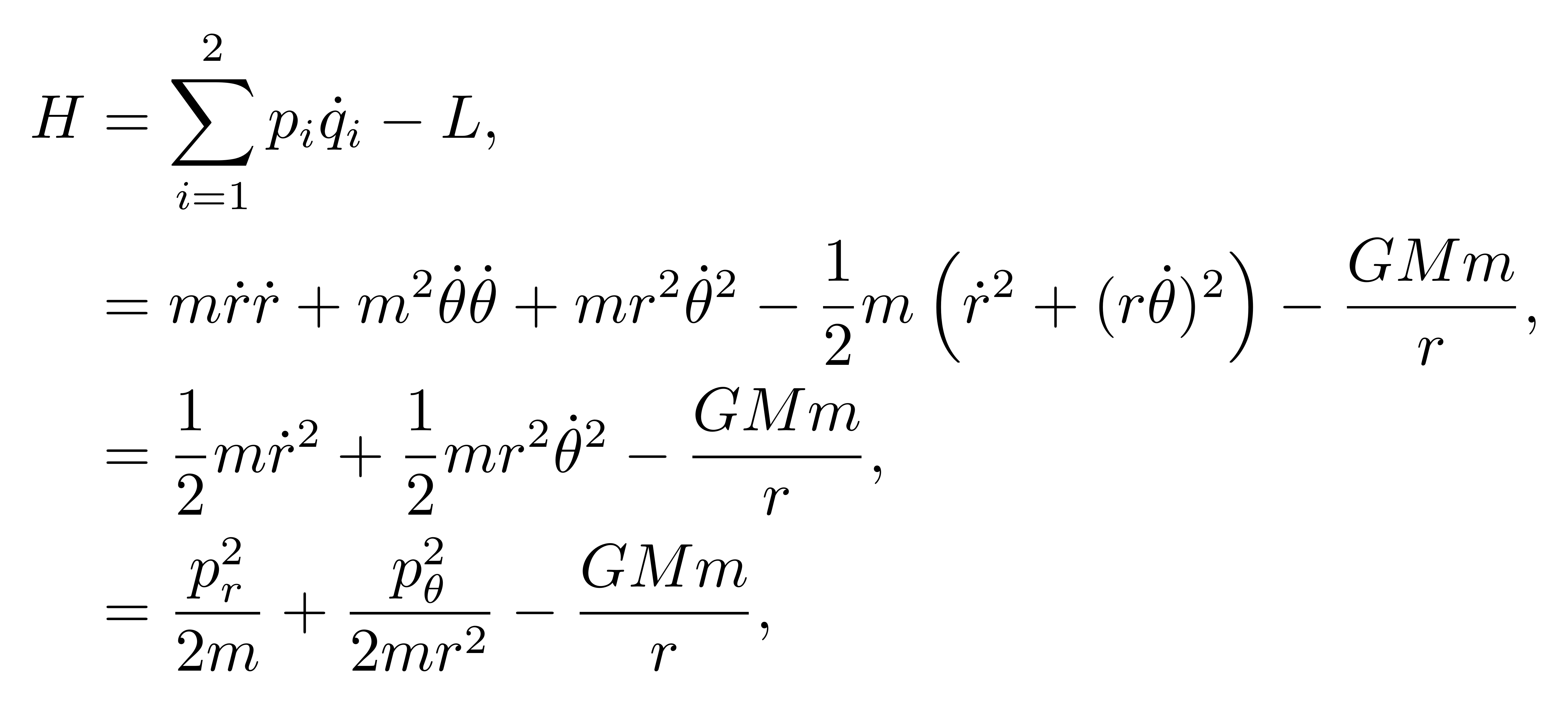 注意这里有多个广义坐标和对应的广义动量,在最后一步,需要把所有变量改写为以广义动量表达的形式。此时,求径向距离 r 和对应动量 pr 的哈密顿方程(组),首先