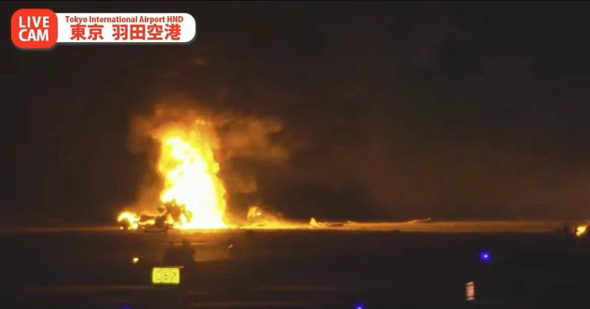 直击|羽田机场飞机碰撞起火,机上约400人安全撤离