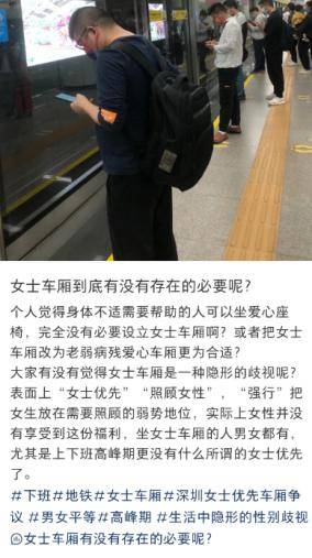 不少网友表示,女士优先车厢没有发挥真正作用。有网友表示,女士优先车厢常常被男性坐满。