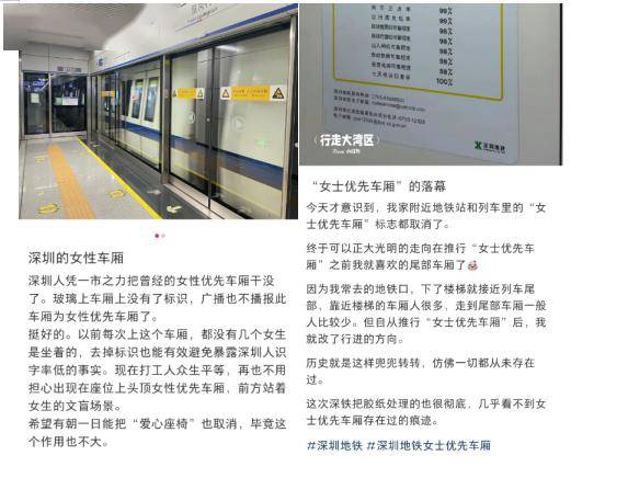 2017年,深圳与广州同步在地铁推行女士优先车厢。2020年,由深圳地铁集团参与建设运营的郑州地铁3号线也跟进实施。由此,深圳、广州和郑州一度成为中国唯三设立女士优先车厢的城市。然而,社会各界的激烈争议也随之涌现。有网友认为,此举彰显对女性的人文关怀;但也有声音指出,设置“女士优先车厢”,不如直接设置“爱心车厢”。